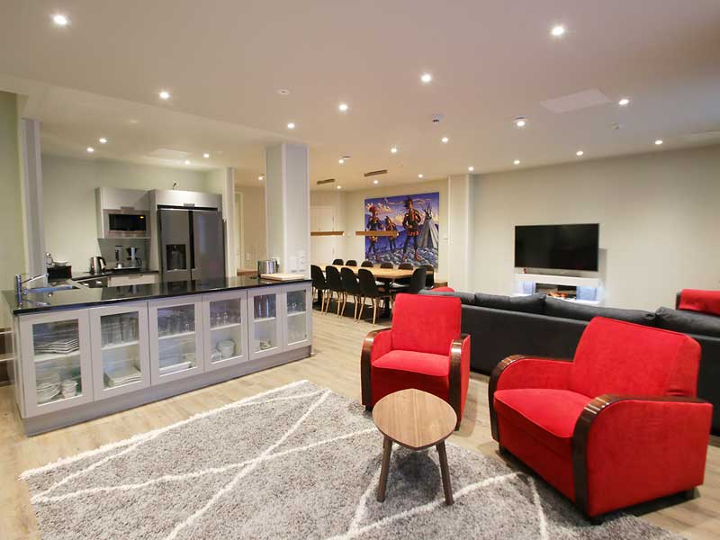 Het 5-kamer appartement is modern en ruim van inrichting. Groot appartement met twee verdiepingen en een eigen sauna, gelegen op de 2. en 3. verdieping, geen lift, eigen ingang van buitenaf. De woonkamer met 55" televisie,grote hoekbank en sfeerhaard en de volledig uitgeruste keuken zijn ruim en creëren het gevoel van een grote ruimte voor het hele vakantieappartement.