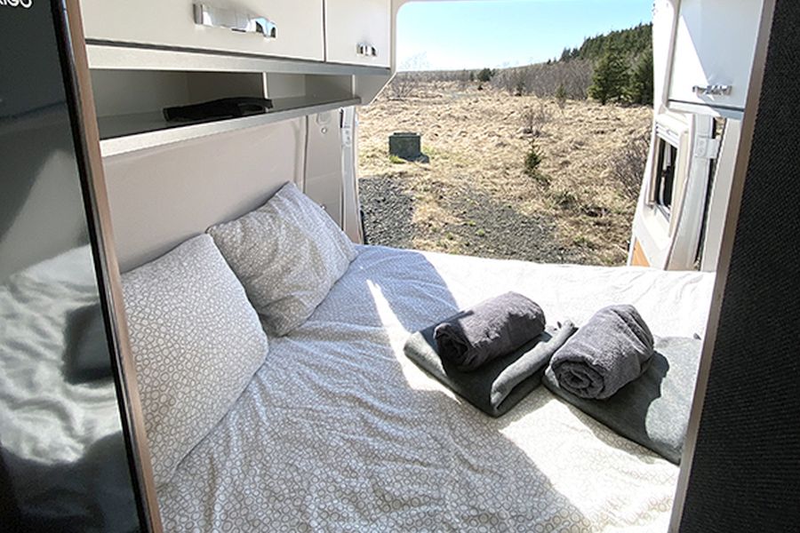 4x4 Camper waarmee je ook op de F-wegen in de IJslandse hooglanden mag rijden. Deze camper is geschikt voor 2 volwassenen + 2 kinderen. 2-Persoonsbed onder het verstelbare dak. Fornuis, koelkast en spoelbak met watertoevoer, die werken op een 12V batterij die je ’s nachts op kan laden. Potten, pannen, kookgerei, bestek, borden en glazen zijn aanwezig.