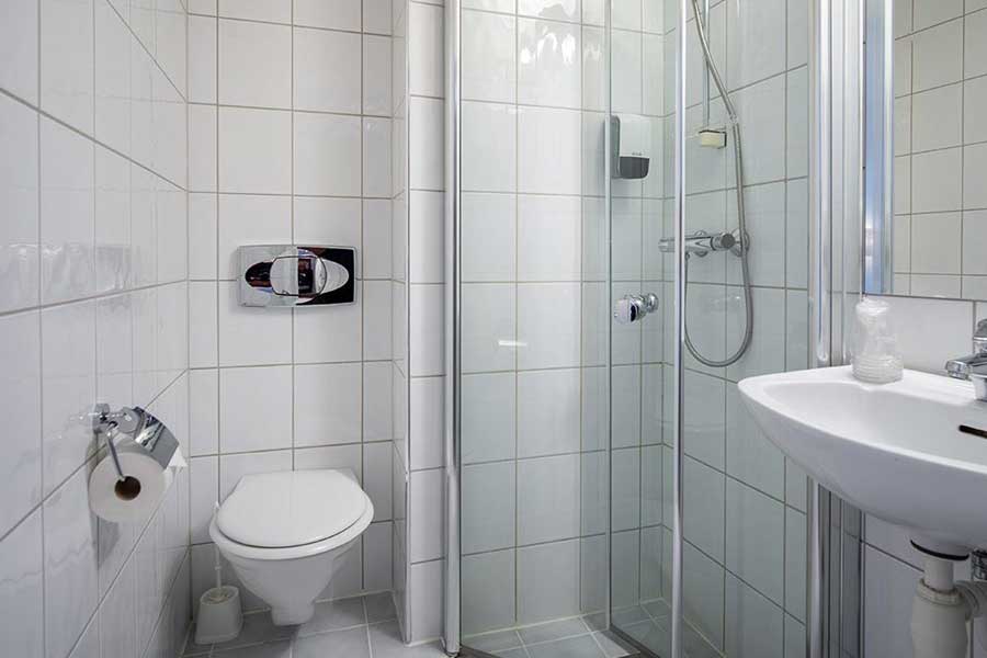 De standaardkamers (13m2) zijn voorzien van een tweepersoonsbed of twee aparte bedden (1.40m), een tv, WiFi, koffie en thee faciliteiten en een badkamer met douche en toilet. Er zijn ook speciale standaard 1-persoonskamers met een 1-persoonsbed, eenvoudig ingericht met tv, badkamer met douche/toilet.